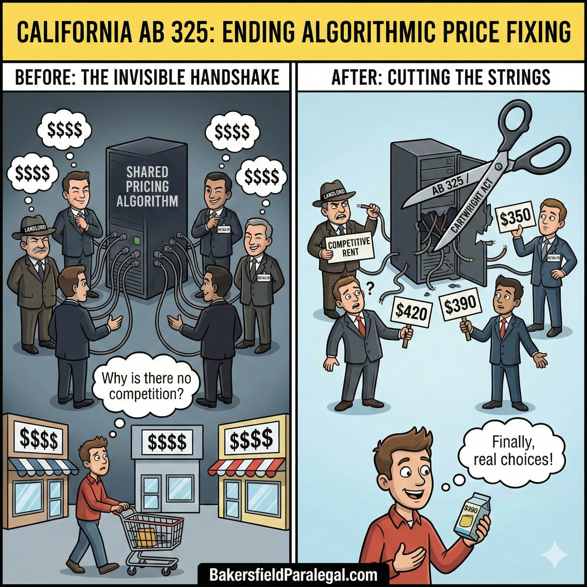 Assembly Bill 325 updates California’s antitrust framework to explicitly prohibit “algorithmic collusion”—the use of shared software or computer processes to manipulate market prices. By closing loopholes in the Cartwright Act, the law ensures that businesses cannot use neutral-appearing technology to perform the same illegal price-fixing activities that would be prohibited if done in person.